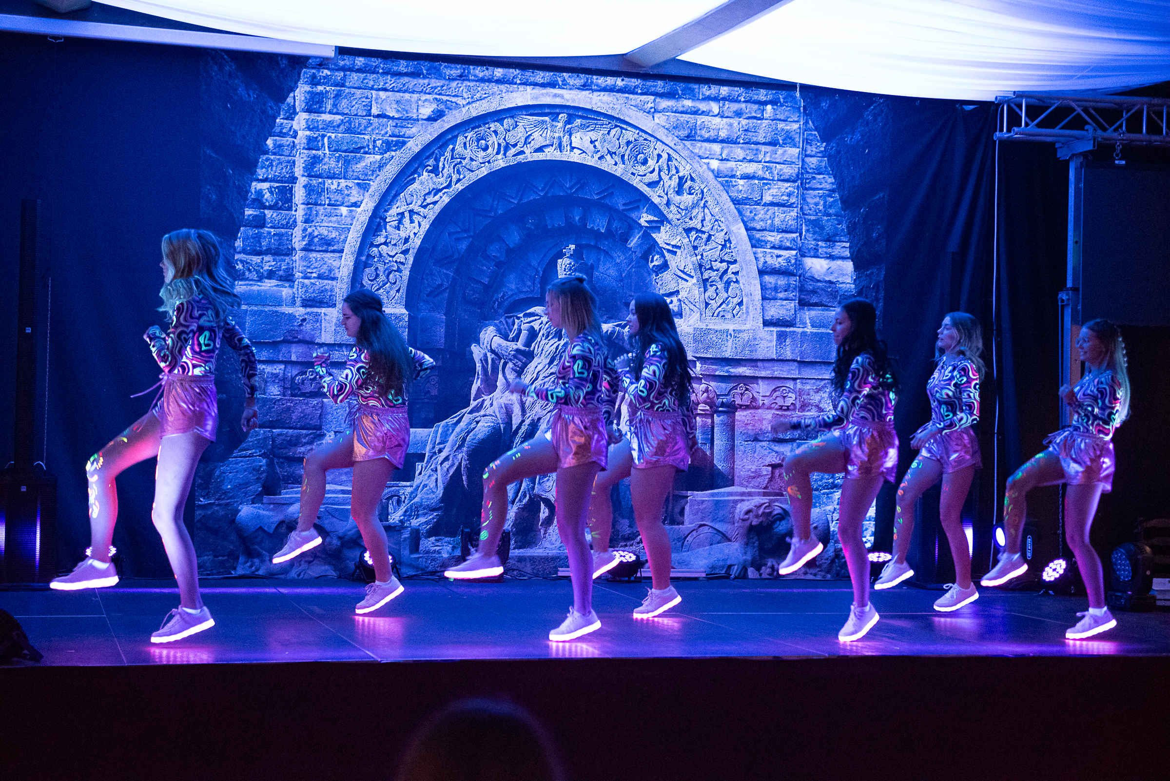 Die 16 Tänzerinnen und Tänzer, die aus ganz Deutschland stammen, zeigten einen Querschnitt aus ihrer tänzerischen Entwicklung: von mitreißendem Swing über energiegeladene Afrika-Rhythmen und den legendären Jailhouse Rock bis hin zu fantasievollen Stücken wie Feuer und Eis, Cowboy und Weltall. Auch ein 90er-Stimmungsmix durfte nicht fehlen – als krönender Abschluss heizte die Truppe mit einer temporeichen DJ-Bobo-Show noch einmal richtig ein.