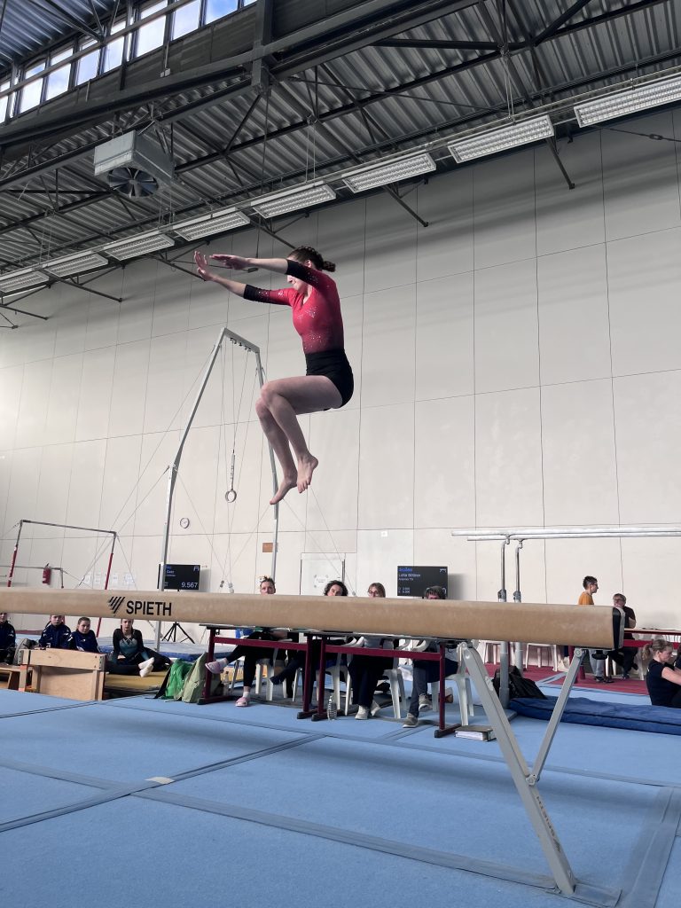 Der Start am Schwebebalken verlief zunächst nicht optimal. Dennoch zeigte das Team Nervenstärke: Lara präsentierte ihre Übung souverän ohne Sturz. Besonders erfreulich war zudem, dass alle Turnerinnen die Rolle rückwärts sicher und ohne Fehler durchturnten.